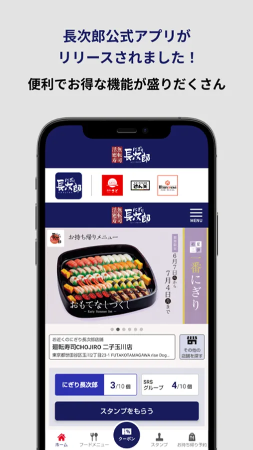 長次郎のお店で利用できる公式アプリをリリースしました。