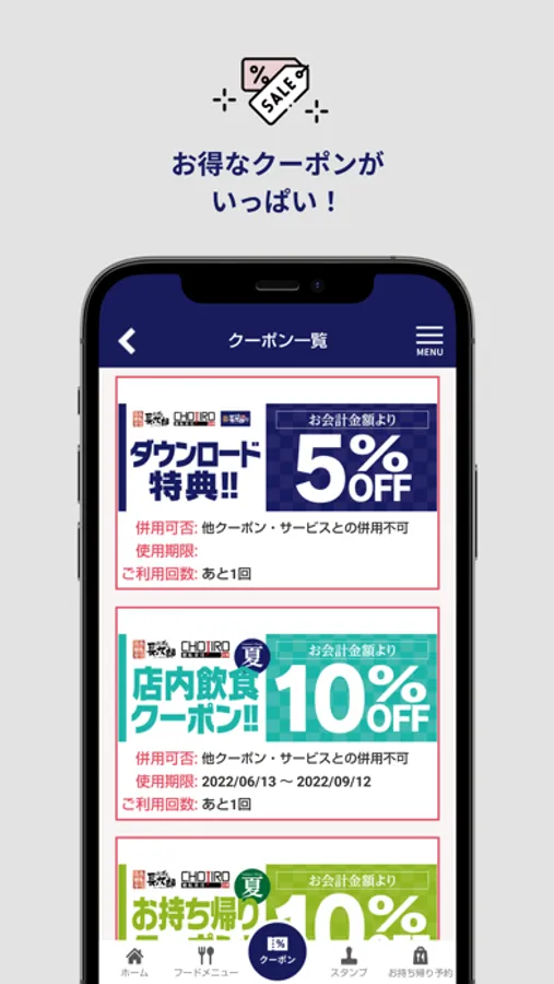 店舗で使えるアプリ限定のクーポンや、お誕生日クーポンなどが利用できます。