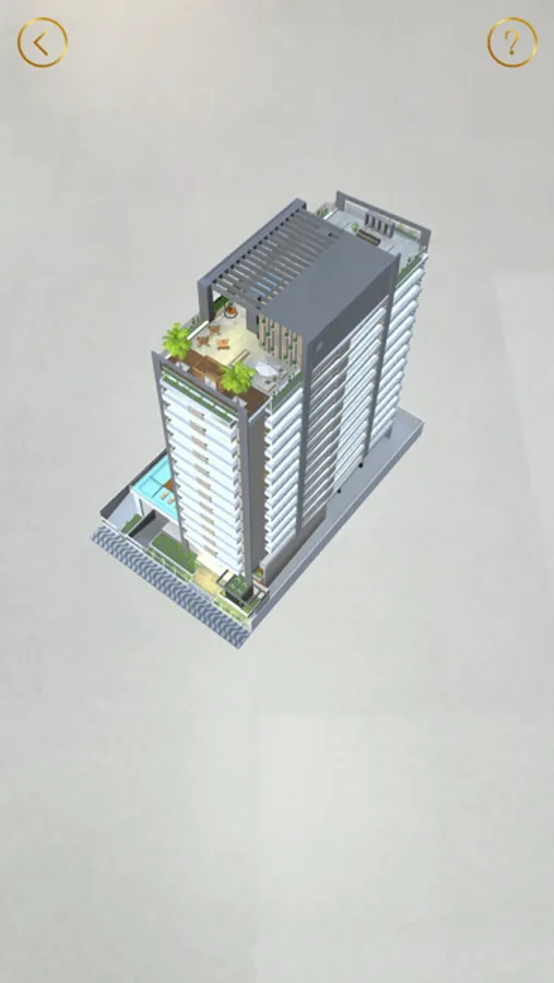 Pelo aplicativo, você poderá explorar o projeto 3D em realidade aumentada e acessar a fachada, área da piscina e uma deslumbrante cobertura que reserva o conforto que você merece.