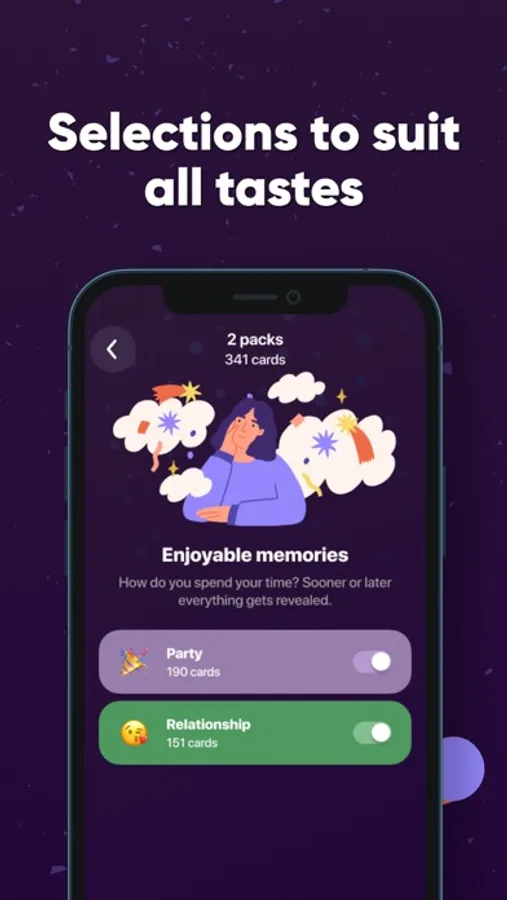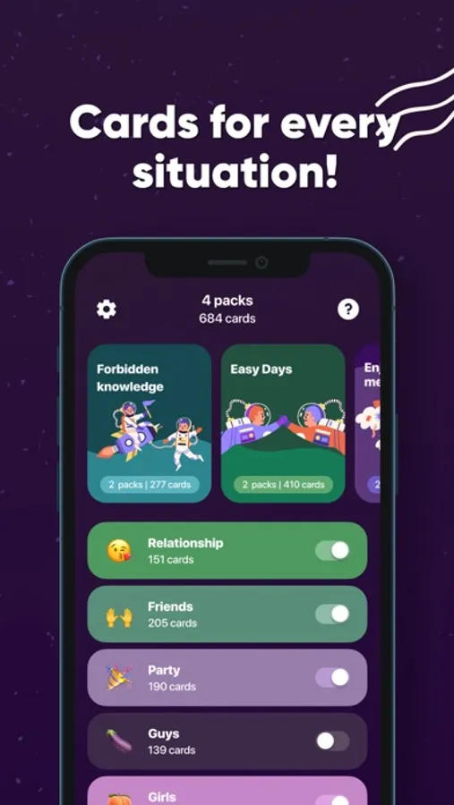 You can choose the sets of questions you want to play, or you can use ready-made packages for all cases