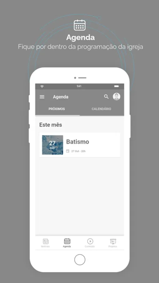 Recursos disponíveis no Aplicativo: Notícias, Agenda da igreja, Eventos, Conteúdos, Projetos, Transmissão ao Vivo e Módulo Ensino.