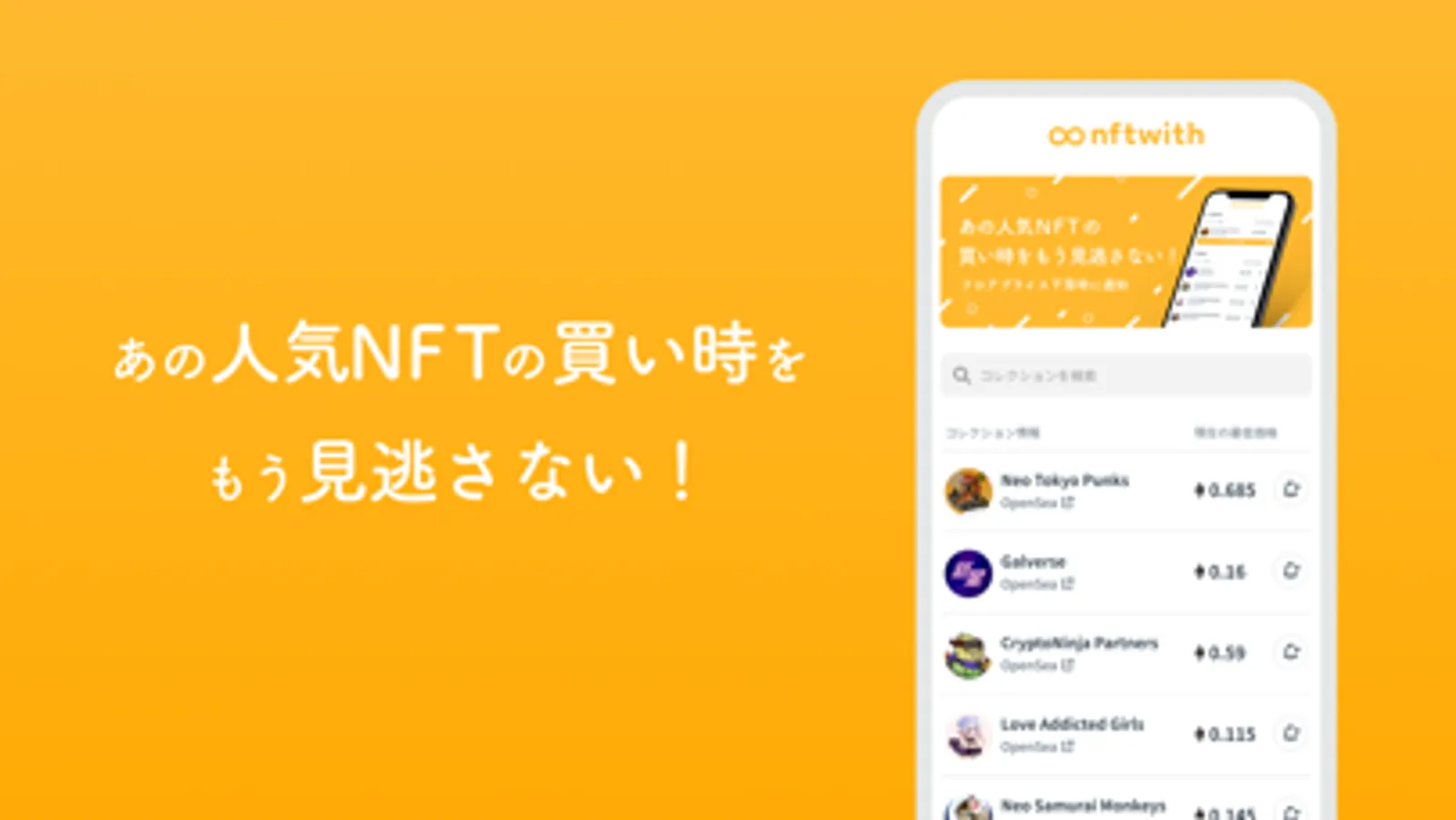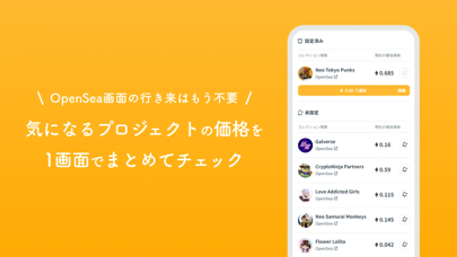 ▼このアプリを使うとフロアプライスの下落に早期に気付くことができ、NFTをお安く購入できるためぜひご利用ください