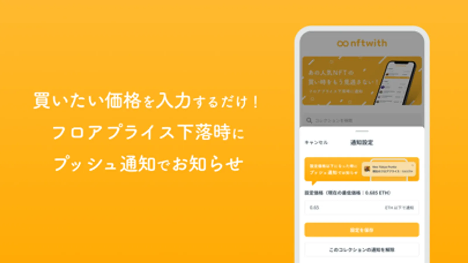 ▼国内外のジェネラティブNFTに関して、通知してほしいフロアプライス(最低価格)を設定できます