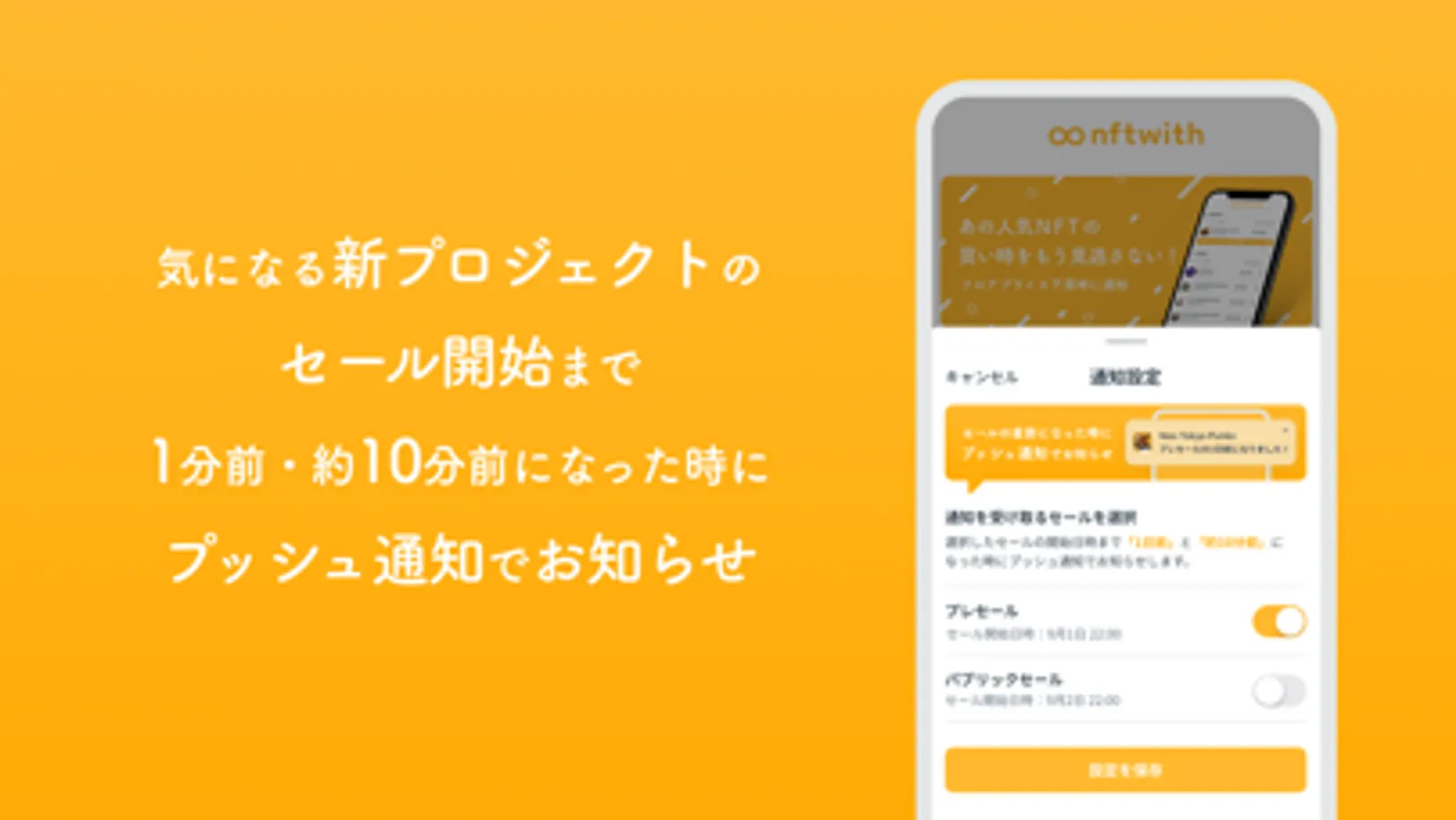 ▼セール前の国内外のジェネラティブNFTに関して、セール日を通知してほしいNFTを設定することができます