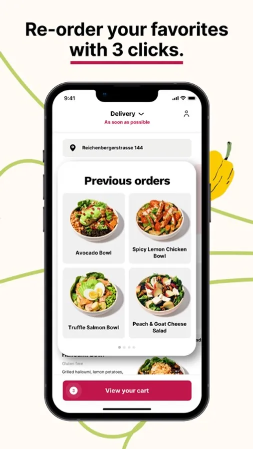 3. Reorder your favourite bowl with just 3 clicks - Get an overview of your last orders and reorder them quickly.