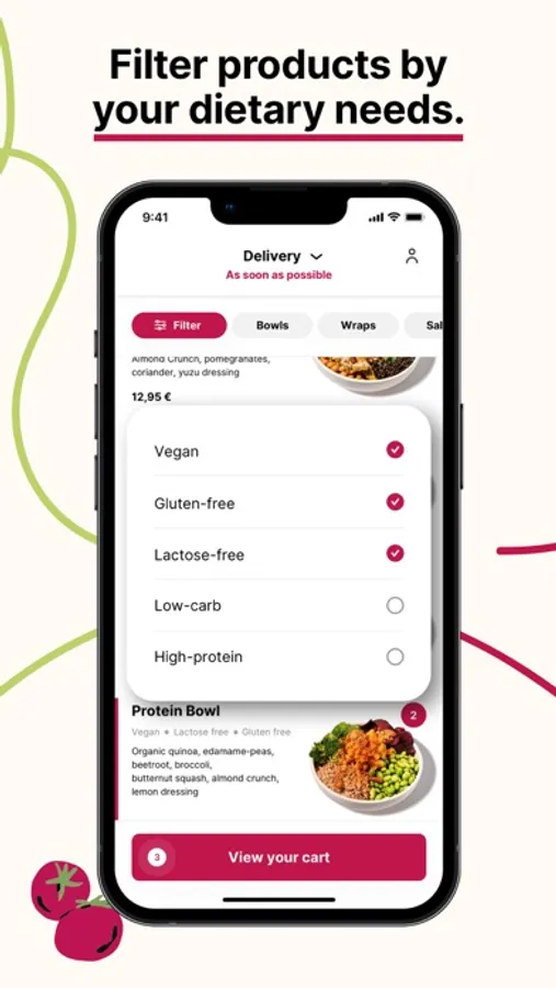 4. Filter products based on your nutritional needs - Set filters and view our low-carb, high-protein, gluten-free, lactose-free or vegan bowls.