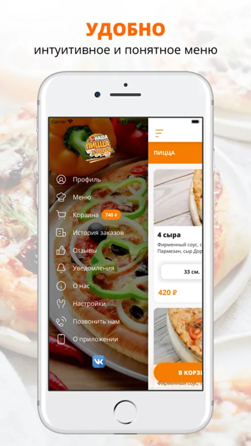 Приложение Наша Пицца | Киров — это удобный способ заказа еды домой или в офис. Всегда в нашем меню - вкусные роллы, пицца, салаты.