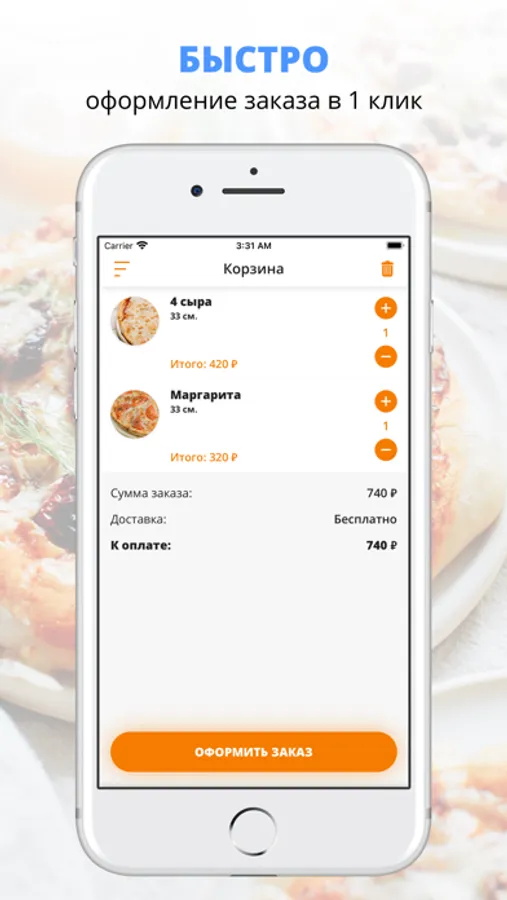 удобная корзина и быстрое оформление заказа,