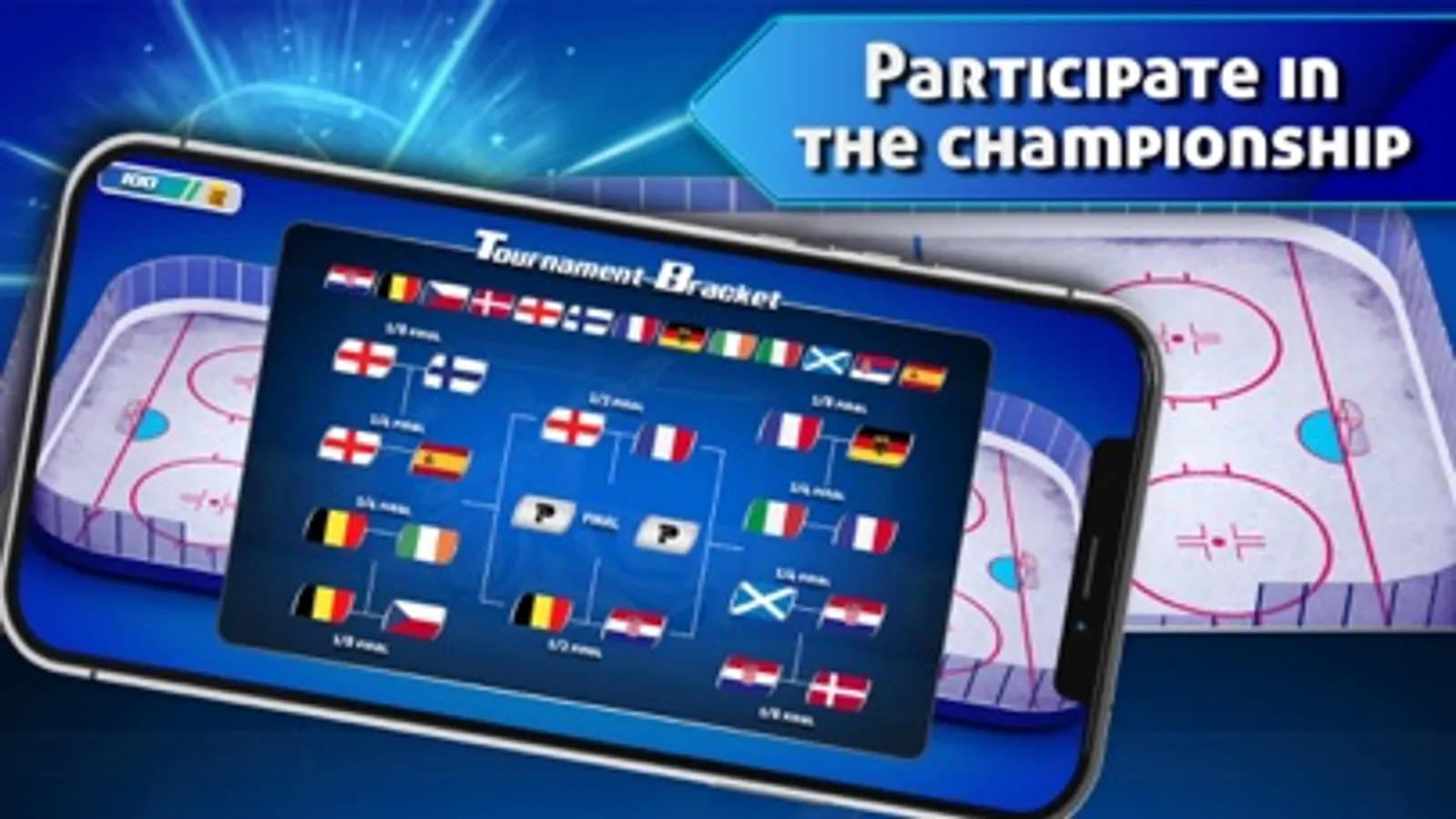 To move up the tournament grid, you need to overtake your opponent in terms of the number of goals scored. To shoot at the goal, you need to choose the trajectory along which the puck will fly.