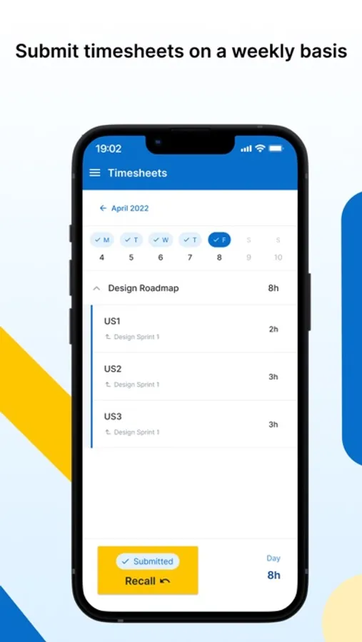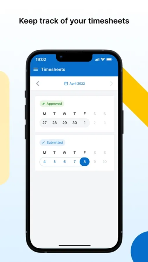 Manage your timesheets directly on your phone at any time, wherever you are.