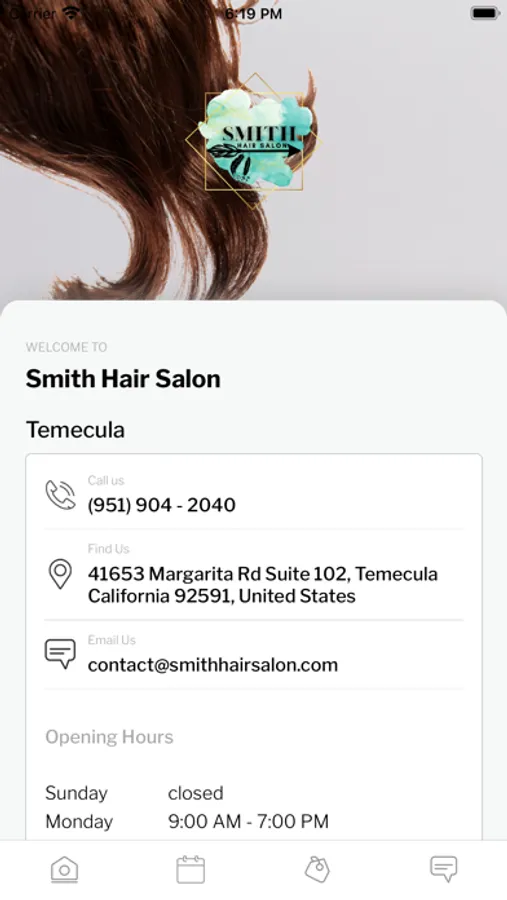 Stay connected with Smith Hair Salon! Book appointments, track loyalty points, message us directly through the app, see upcoming appointments, change appointments, consults through the app, first to know open availability, and SO MUCH MORE!