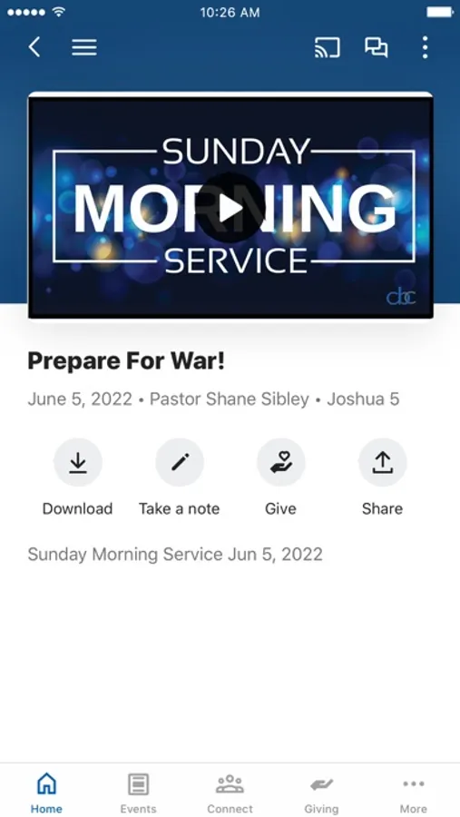 This app will help you stay connected with the day-to-day life of our church. With this app you can: watch or listen to past messages; stay up to date with push notifications; share your favorite messages via Twitter, Facebook, or email; and download messages for offline listening.