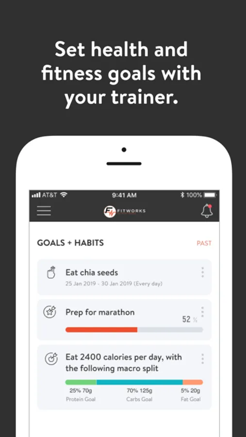 With the With the Fitworks: All-Access Fitness App, you can start tracking your workouts and meals, measuring results, and achieving your fitness goals, all with the help of your personal trainer.