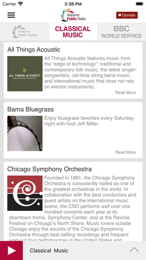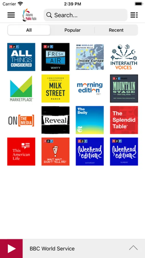 The Alabama Public Radio App allows you to listen to WUAL-FM, pause and rewind the live audio, view the program schedule, and wake up to APR with the alarm clock!