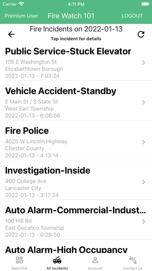 Fire Watch 101 allows users to view and receive alerts about EMS and Fire incidents in the following Pennsylvania counties: