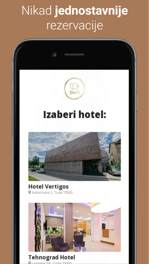 VerTe predstavlja prvu aplikaciju u BiH namijenjenu za kreiranje rezervacija hotelskih usluga i smještajnih jedinica. Kao moderna i multifunkcionalna platforma na ovaj način VerTe omogućava brz i praktičan pregled hotela, kao i rezervisanje potrebnih hotelskih soba.