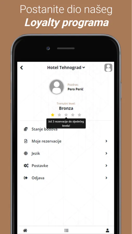 Za stalne goste hotela, ovo je izuzetna prilika da ostvare popust poslije svakog puta kada iskoriste uslugu. Ono što predstavlja dodatnu prednost jeste i širenje same aplikacije putem preporuke. Za svaku preporuku, korisnik ima dodatni bonus tj. bodove na svom profilu.