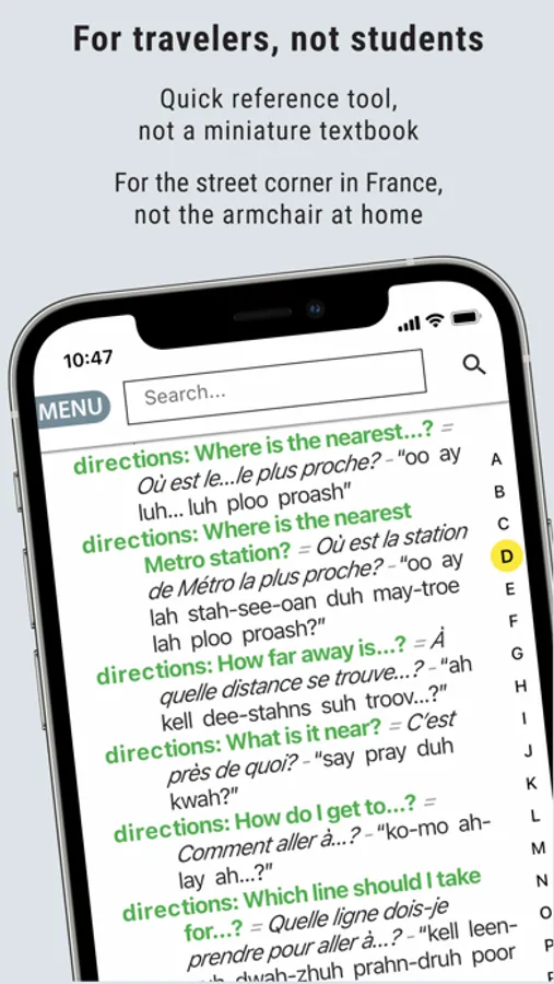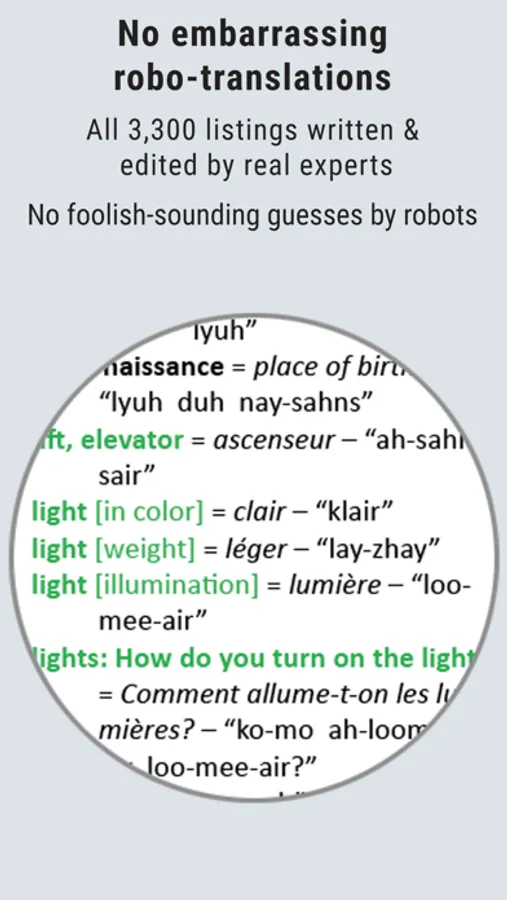 It is completely unlike any other phrasebook or translation app. There’s nothing to learn or figure out. All you need is the alphabet.