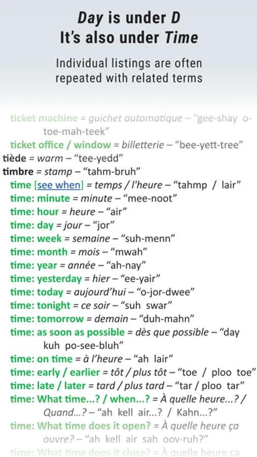 “Just-In-Time French Phrasebook” assumes you will arrive in France without speaking a word of French.