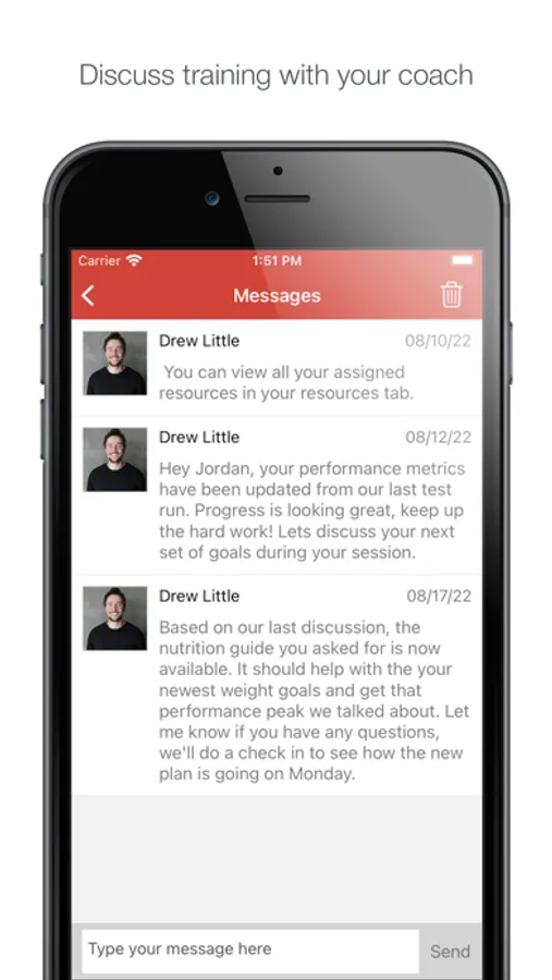 - Communicate with your coach and easily exchange resources and information