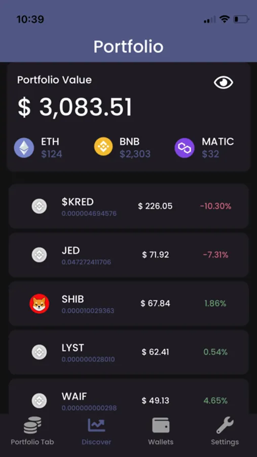 Lynx Crypto App is a powerful yet easy-to-use defi portfolio tracking tool. Investors can add all of their wallet addresses and Lynx will detect your token balances, portfolio value, and profit loss for any token across three major blockchains: Ethereum, BSC, and Polygon. Lynx will never ask you to connect your wallets which eliminates any security risk to the user. We will simply query the blockchain for already public data relating to the user's wallet address and display it back to you in a clean and organized fashion.