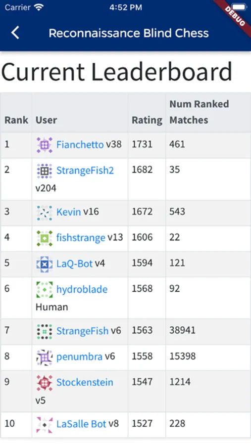 In unranked RBC games, the player plays with a guest account. They choose their opponent from a list of available bots and select their color (white or black). An unranked RBC game will not affect the player's rating.