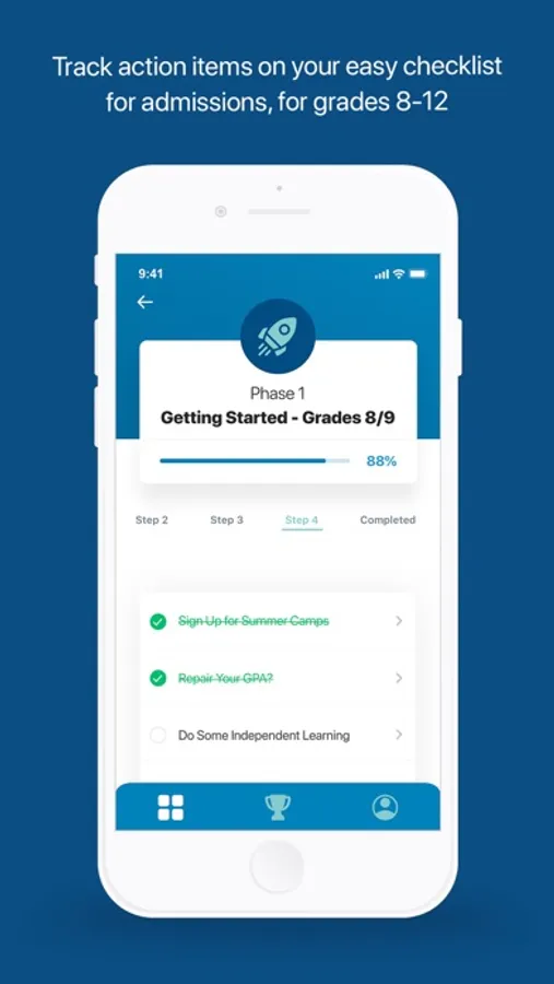 Get the very best college guidance, wisdom, and strategy all in one handy app that feeds you a few tasks at a time, so that you can stay on track.