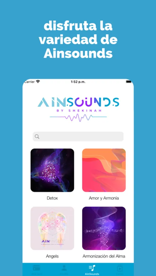 Aincard I Am es una app diseñada para llevar una cartera de sonidos que elaboramos cuidadosamente pensando en la persona, en donde podrás hacer uso de nuestros nuevos productos, Aincard I Am y Ainsounds.