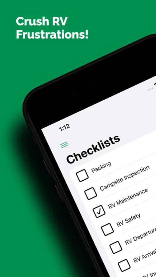 Crush your RV frustrations! Simplify your camping experience with RV Checklist, the user friendly app for managing everything RV.