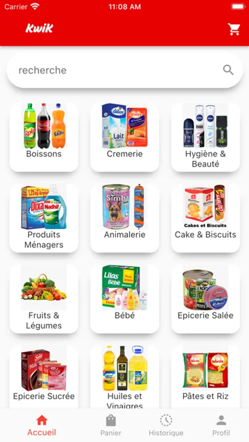 notre application de commerce rapide « kwik » a pour objectif de livrer des produits d'épicerie aux clients dans un délai de 30 mn. Construite sur la base de la satisfaction du client, cette application très bien conçue amènera les supermarchés au domicile du client
