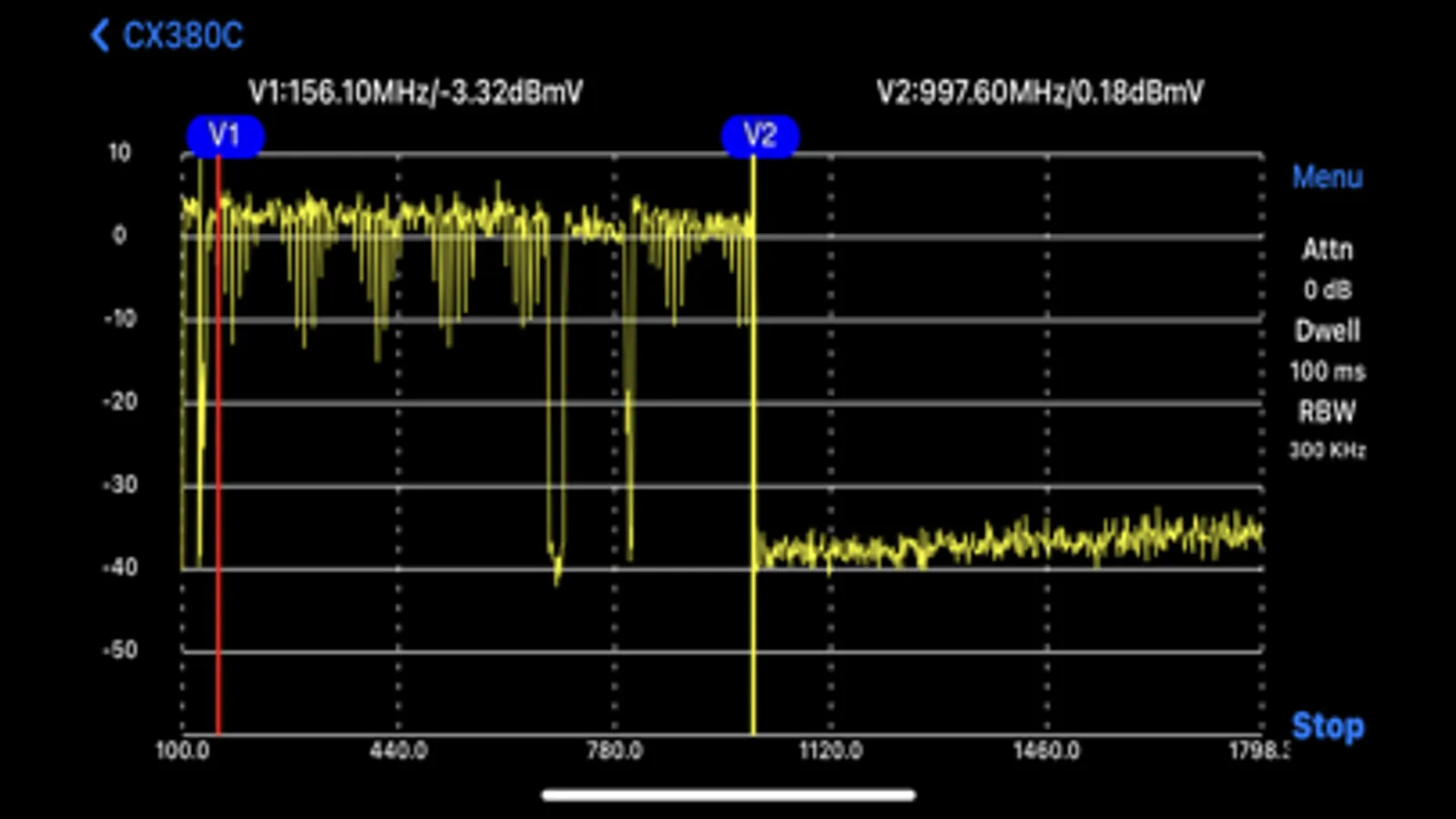 This app will allow the user to perform remote operations from a Return Path Monitoring System or Remote Spectrum View from a CX380. It requires a Return Path Monitoring System CX180R or a CX380.
