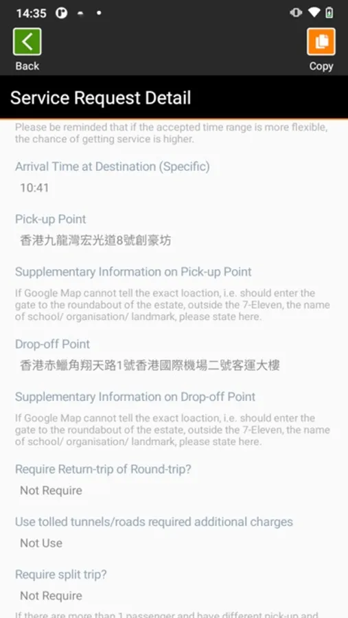 Scheduled Route Service is a regular commuting service for work, school, training or rehabilitation centres operated on weekday morning and evening peak hours.