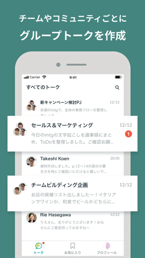 未読・既読機能は搭載していないため、不要なストレスなくコミュニケーションを楽しむことができます。