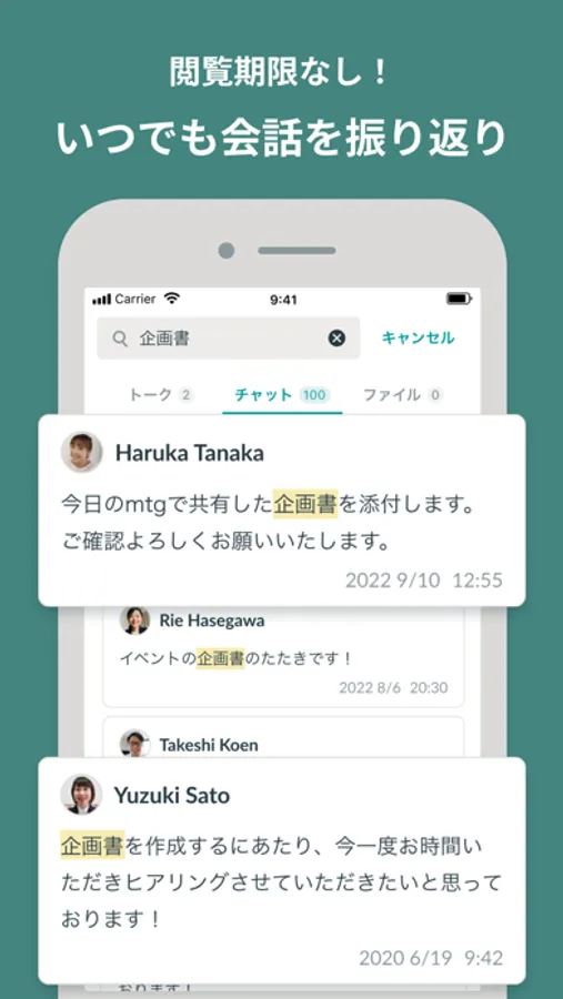 過去のメッセージも期限なく閲覧でき、いつでも振り返ることができます。長期間のプロジェクトやコミュニティでも安心して利用できます。