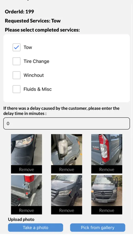 Service types (tow, winch, tire change, etc)