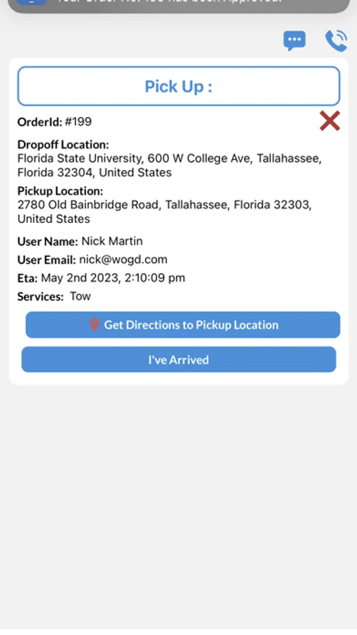 Get notifications for requests in your coverage area(s). Accept the job, assign a vehicle & driver, give an ETA, and head to the pickup location. Contact the customer through the app as needed.
