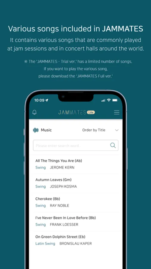 ※ The 'JAMMATES - Trial ver.' has a limited number of songs. If you want to play the various song, please download the 'JAMMATES Full ver.'