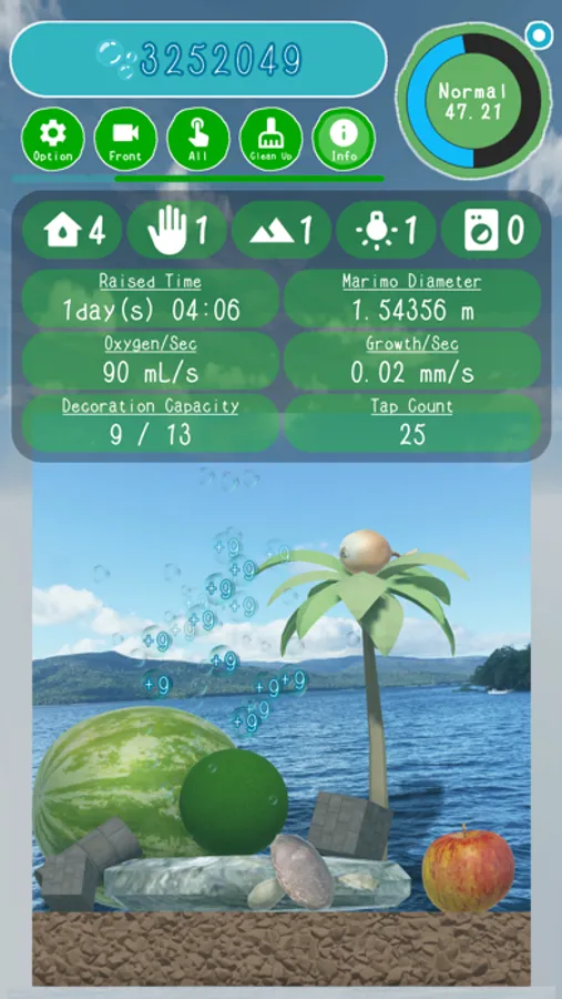 Tap Marimo to get oxygen bubbles. Oxygen is gradually released and accumulated without doing anything.