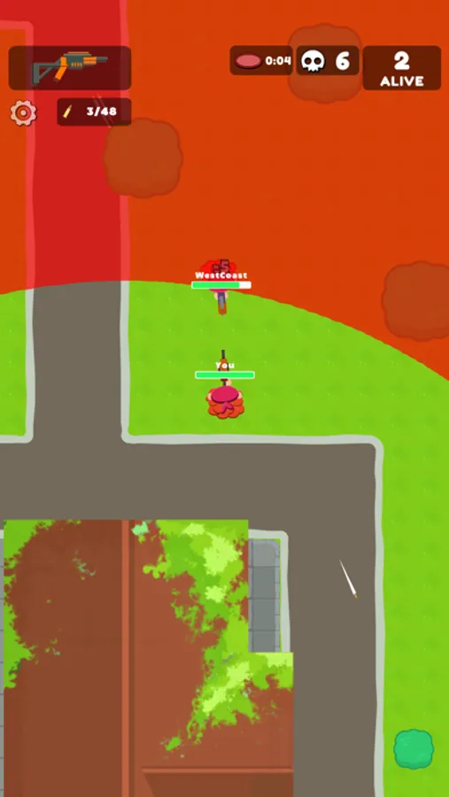 You start on a random position on the map. Your first job will be to pick up a gun and some ammo. Watch out for nearby opponents. Stay alive at all costs and use your fists if it comes to it.