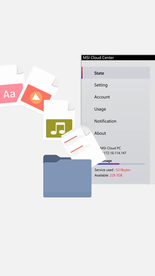 7. After the device and computer are paired, use the MSI Cloud Center app to send files, photos, videos, and other items between your device and the MSI computer.