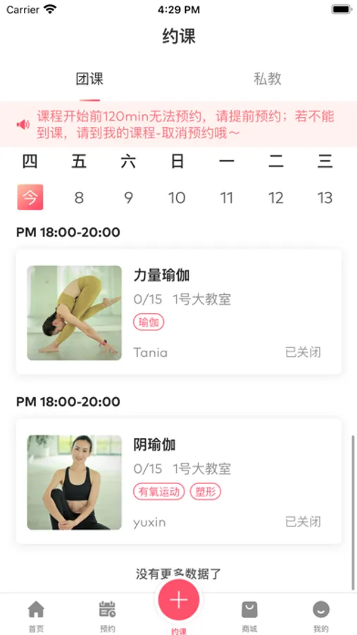 期限卡:用于在线约课,办理期限卡的会员,可预约团课,不可预约私教课。