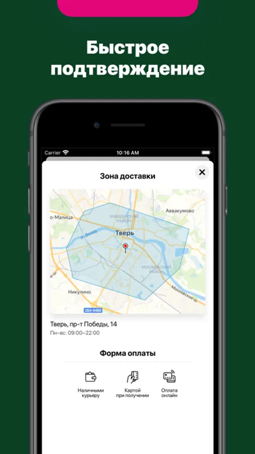 — Быстрый заказ с мгновенным подтверждением через приложение.