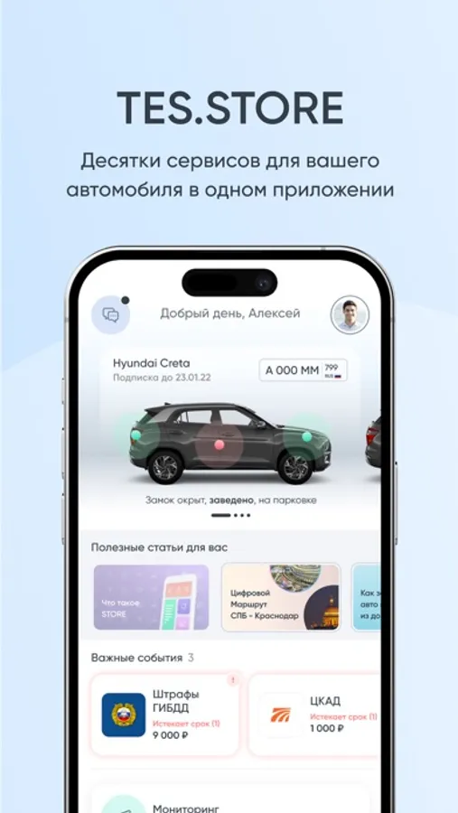 Пользуюсь TES.STORE уже несколько недель и очень довольна. Удобно, что в одном приложении можно сразу следить за автомобилем, проверять штрафы и оплачивать их без лишней волокиты. Особенно понравилась функция отслеживания поездок и статистика по расходам - помогает контролировать машину и планировать расходы на бензин. Интерфейс простой и понятный, всё работает стабильно, без сбоев. Отличный сервис, рекомендую!