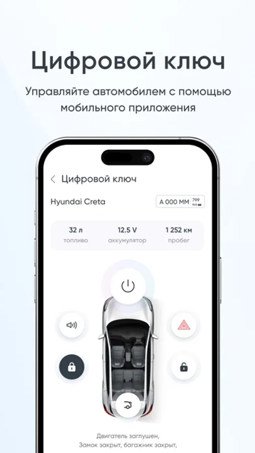 The TES.STORE application will allow you to always be in touch with your car: remote auto engine start, control of the central locking, trunk, emergency lights and sound signal.