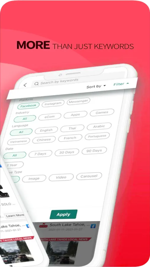 You can filter content in multiple dimensions such as SortBy, Page Categories, Language, CTA Types, Creatives, Device Types, Dates, etc.