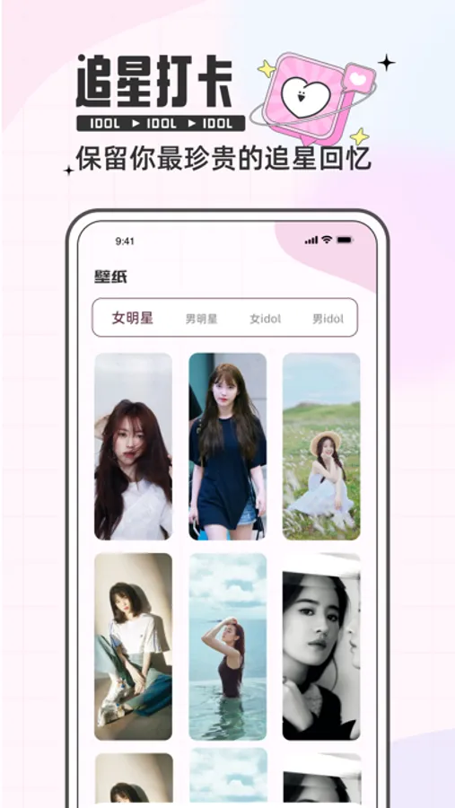 以及海量壁纸库,男女明星以及男女idol,让你能够在这里省下更多的找图时间,还能自由的来回切换壁纸,获得不同的使用体验!
