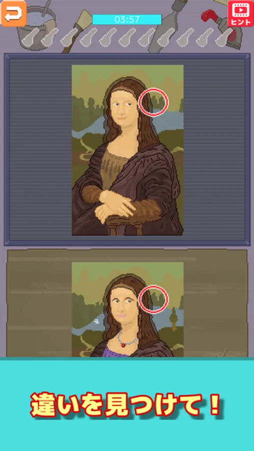 ・上下の美術品をみくらべて、違う場所をタップで修復。