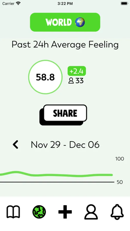Once you share your feeling, you unlock the ability to see how the entire community is feeling around the world in real-time! You'll find an average score for the planet and how we've been doing over the past week.