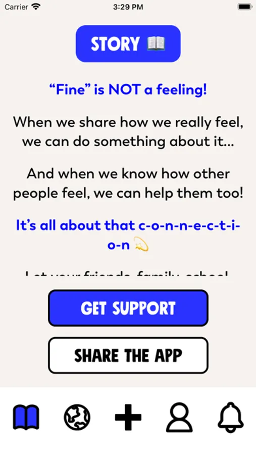 Being human isn't easy, but together we can lighten the load. Share your feelings with family and friends. And, if you need a lil extra support, tap the "Get Help" button in the 'Story' section.