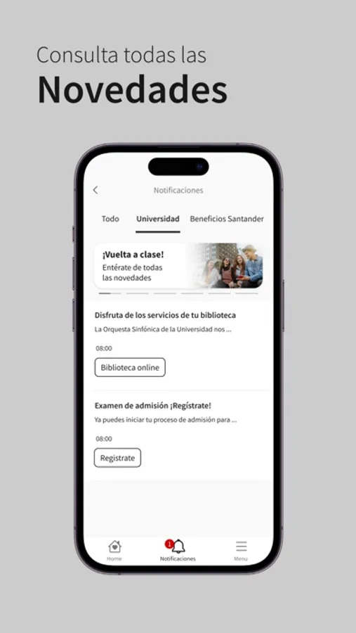 2.Conocer al momento las noticias, eventos y anuncios más relevantes de tu universidad.